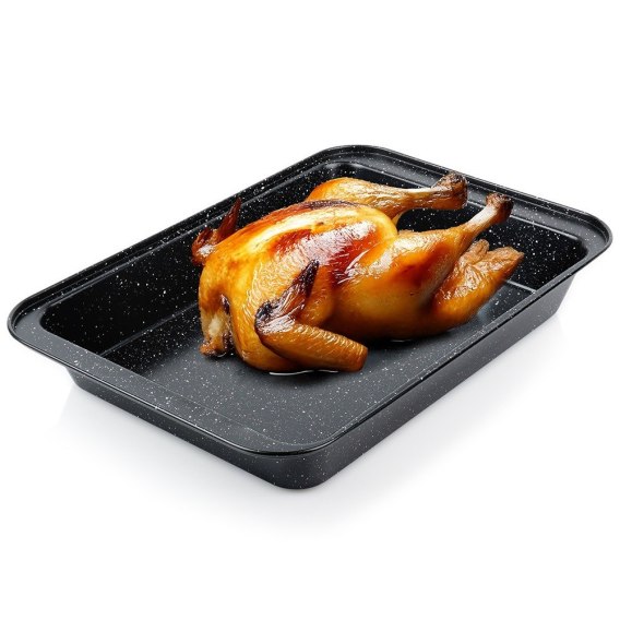 Brytfanna gęsiarka do piekarnika z powłoką granitową do pieczenia ciastek, frytek, pizzy czy mięsa. Blacha nadaje się do piekarników gazowych oraz elektrycznych.
