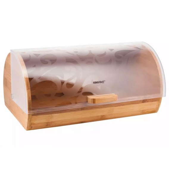 Chlebak KINGHOFF wykonany z drewna bambusowego z pokrywą z akrylu.