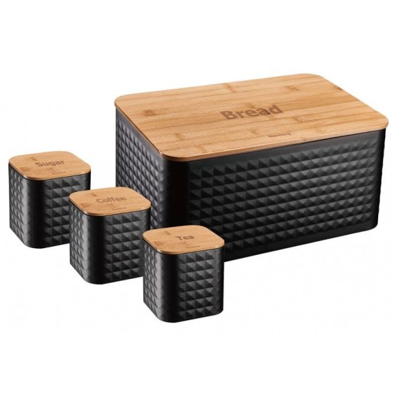Elegancki zestaw w którego skład wchodzi chlebak oraz 3 pojemniki firmy KLAUSBERG.