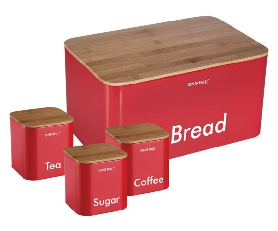 Zestaw w którego skład wchodzi chlebak oraz 3 pojemniki firmy KINGHOFF.