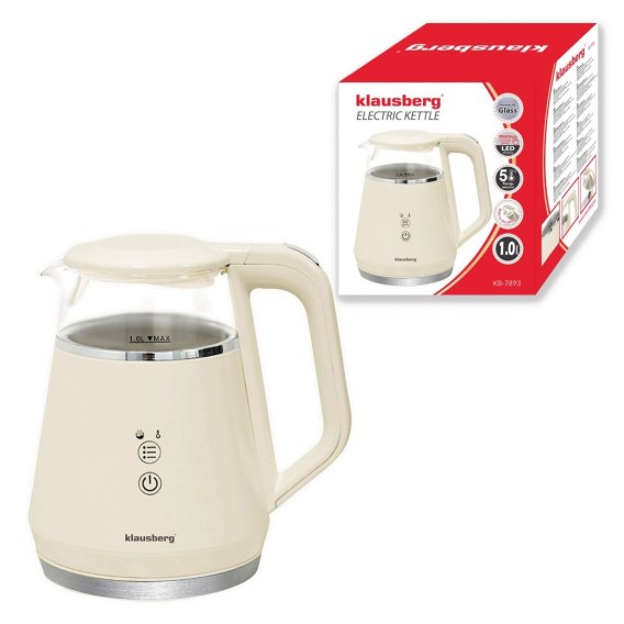 CZAJNIK ELEKTRYCZNY Z REGULACJĄ TEMPERATURY MAŁY 1.0L BEZPRZEWODOWY KREMOWY KLAUSBERG KB-7893
