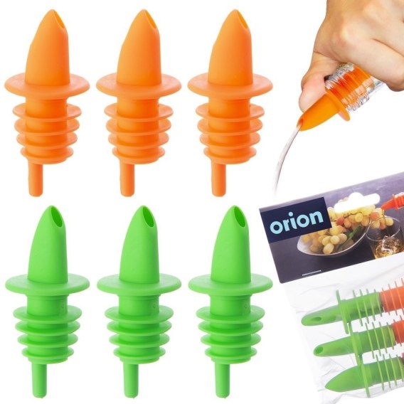 Zestaw sześciu nalewaków do butelek. Szczególnie polecane do butelek wina, wódki czy innego alkoholu, sprawdzą się również do butelki z octem, oliwą a nawet syropem smakowym. Zapewnią wygodne nalewanie. Pasują do większości butelek. Oryginalny produkt czeskiej marki Orion. Wyprodukowano zgodnie z europejskimi standardami.