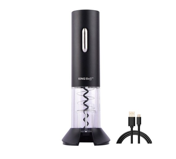Korkociąg elektryczny bezprzewodowy do wina KINGHOFF którym bez problemu otworzysz każdą zakorkowaną butelkę.