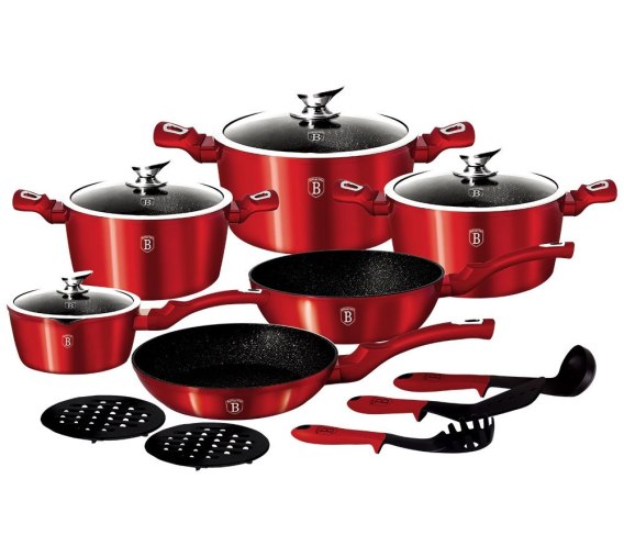 15-elementowy zestaw garnków BERLINGER HAUS z serii METALLIC LINE - BURGUNDY (RED line) (model '2018)