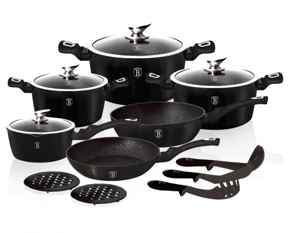 15-elementowy zestaw garnków BERLINGER HAUS z serii METALLIC LINE - BLACK THERMOGUARD