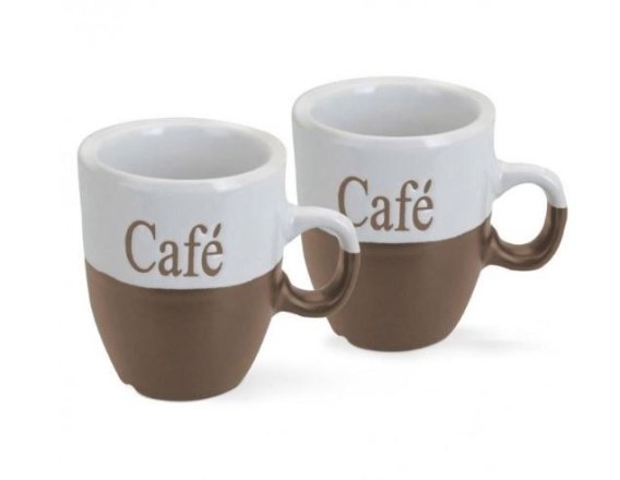 Rozkoszuj się aromatem ulubionej kawy w stylowy sposób. Zaprojektowane z myślą o miłośnikach kawy, te eleganckie kubki o pojemności 150 ml są idealnym dodatkiem do Twojej zastawy. Wykonane zostały z kamionki pokrytej do połowy brązowym i naturalnie jasno kremowym lakierem z napisem Cafe w brązowym kolorze.