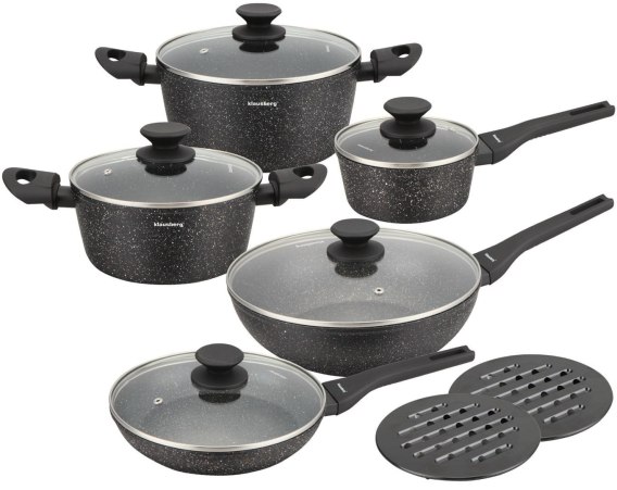 12-elementowy zestaw garnków i patelni z marmurkową powłoką nieprzywierającą marki KLAUSBERG.