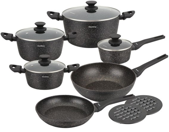 12-elementowy zestaw garnków i patelni z marmurkową powłoką nieprzywierającą marki KLAUSBERG.