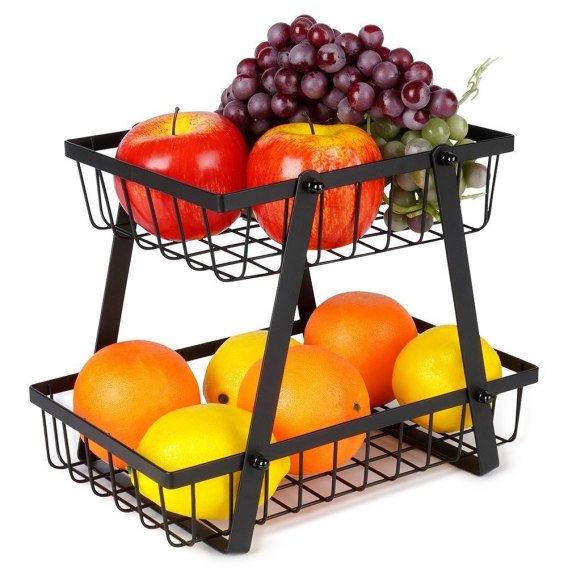 Dwupoziomowy koszyk na owoce i warzywa w stylu loft. Wykonany z metalu w kolorze czarnym. Znajdzie zastosowanie w każdej kuchni.