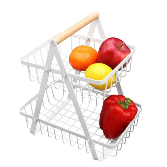 • Dwupoziomowy design: Koszyk posiada dwa poziomy, umożliwiając przechowywanie większej ilości owoców i warzyw na ograniczonej przestrzeni.