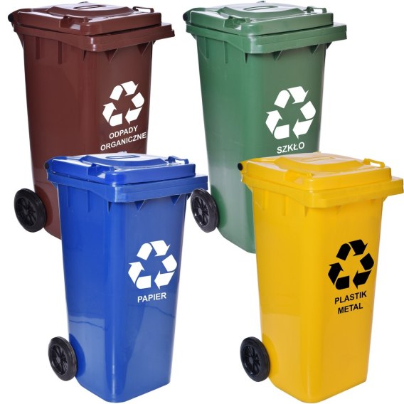 Pojemność: 4x120 litrów | Kolory: żółty, niebieski, zielony, brązowy