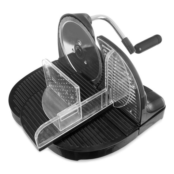 Kompaktowy rozmiar - Krajalnica umożliwia precyzyjne ustawienie grubości plastrów za pomocą regulowanej dźwigni, dzięki której można pokroić produkty na kawałki o grubości do 1,8 cm.