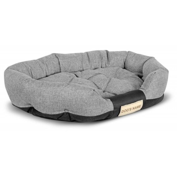 Wytrzymałe OWALNE wodoodporne legowisko dla psa w kolorze szarym, PERSONALIZOWANE imieniem pupila!