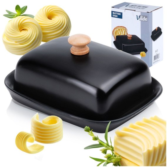 MASELNICZKA CERAMICZNA MASELNICA POJEMNIK NA MASŁO CZARNA UCHWYT DREWNIANY VILDE 139677