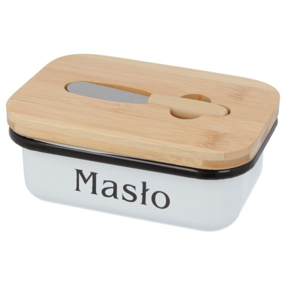 Pojemnik na masło wykonany został z trwałej stali nierdzewnej odpornej na korozję, a pokrywka z ekologicznego drewna bambusowego - połączenie estetyki i funkcjonalności.
