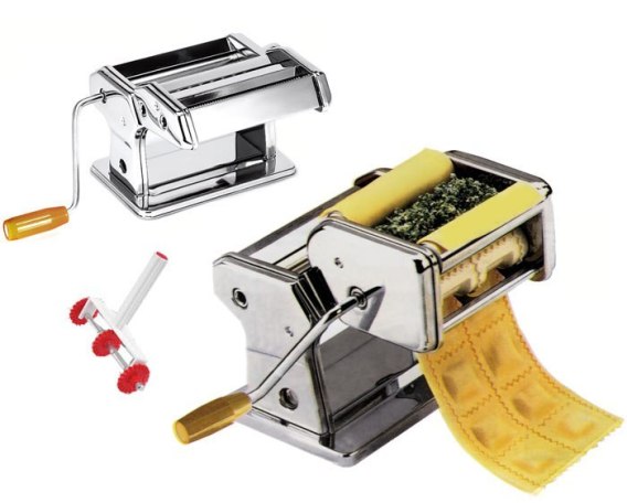 MASZYNKA 3 w 1 DO WAŁKOWANIA CIASTA, ROBIENIA MAKARONU i PIEROGÓW. Wykonana z odlewu stalowego oraz chromowanej stali nierdzewnej 18/10. Bardzo ciężka i stabilna.