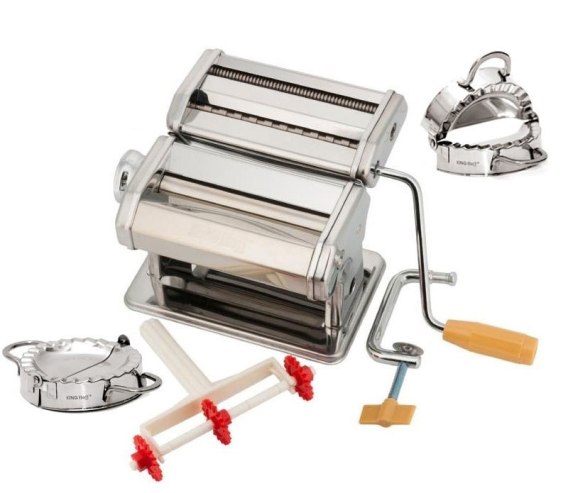 MASZYNKA 4 w 1 DO WAŁKOWANIA CIASTA, ROBIENIA MAKARONU i PIEROGÓW. Wykonana z odlewu stalowego oraz chromowanej stali nierdzewnej 18/10. Bardzo ciężka i stabilna.