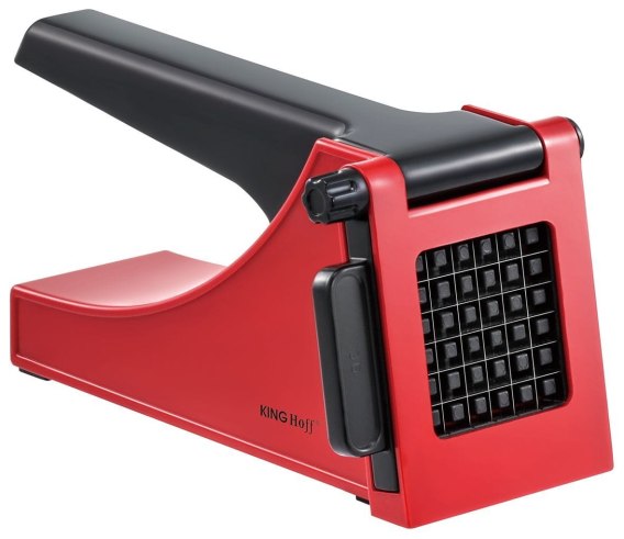 Maszynka do krojenia ziemniaków na frytki od marki KINGHOFF. Krajarka składa się z korpusu wyposażonego w antypoślizgowe nóżki oraz zdejmowalnego ostrza ze stali nierdzewnej do krojenia ziemniaków na frytki.