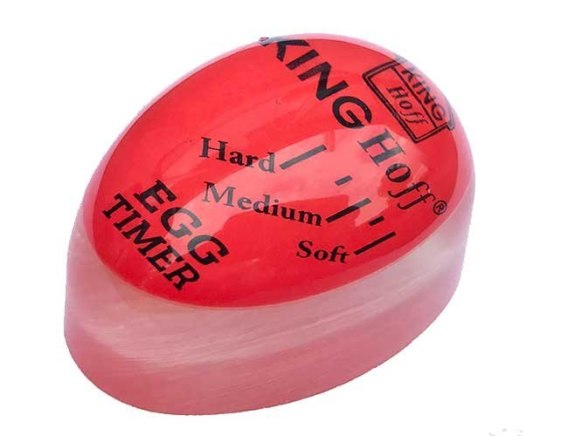 Minutnik / Timer do gotowania jajek firmy KINGHOFF. Minutnik wkładamy do garnka razem z jajkami (zaleca się, aby jajka i minutnik miały tą samą temperaturę wyjściową) i obserwuje jak zmienia kolor podczas gotowania.