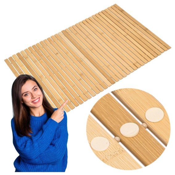 Stylowa, ekologiczna i praktyczna - mata bambusowa Silva to idealny wybór do łazienki, kuchni czy przedpokoju. Wykonana z naturalnego bambusa, oferuje nie tylko trwałość i odporność na wilgoć, ale również estetyczny wygląd i komfort użytkowania. Dzięki kompaktowym wymiarom zmieści się nawet w niewielkich przestrzeniach, a antypoślizgowe podkładki zapewniają bezpieczeństwo na każdej powierzchni. Gładka w dotyku, łatwa w czyszczeniu oraz posiada właściwości antybakteryjne i antygrzybiczne - ta mata łączy w sobie wygodę z ekologicznym podejściem do codziennych rozwiązań.