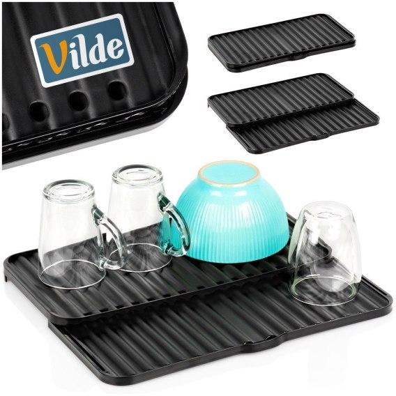 Rozsuwana taca do suszenia naczyń jest świetną alternatywą dla klasycznych suszarek. Pozwoli na suszenie naczyń na dwóch poziomach. Przydatna w każdej kuchni, pozwoli w wygodny sposób odłożyć umyte kubki, miski lub inne naczynia. Mata stylowo prezentuje się w kuchni, zapewnia porządek i efektywne suszenie naczyń. Oryginalny produkt marki Vilde. Wyprodukowano zgodnie z europejskimi standardami.