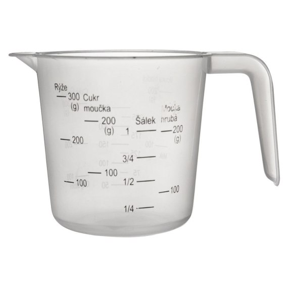 Miarka kuchenna z uchwytem i wylewką. Posiada miarki odpowiednie dla cieczy, cukru, mąki, oleju, maku, ryżu. Dzięki niej odpowiednio wymierzymy potrzebne nam składniki.