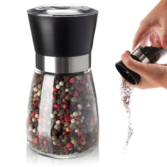 Ręczny młynek do pieprzu lub soli. Dzięki swoim niewielkim rozmiarom jest niezwykle poręczny. Posiada regulacje grubości mielenia za pomocą pokrętła.