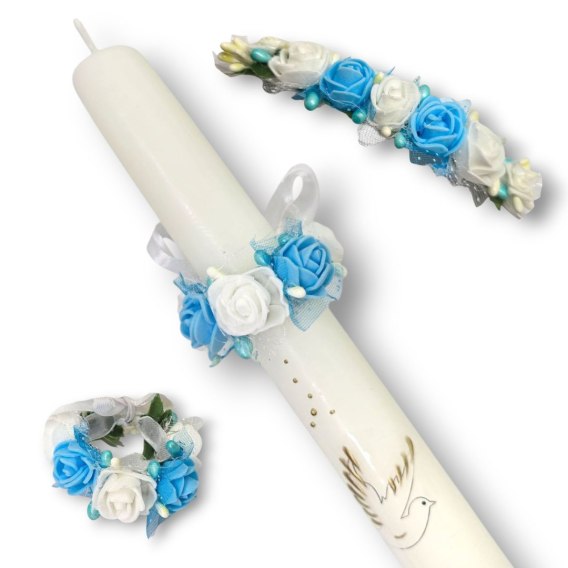OZDOBA NA ŚWIECE DO CHRZTU PROFITKA DEKORACJA ŚWIECY Z KWIATUSZKÓW