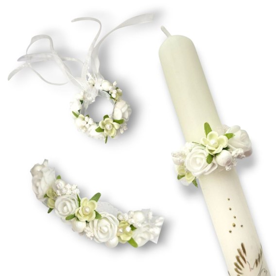 OZDOBA NA ŚWIECE DO CHRZTU PROFITKA DEKORACJA ŚWIECY Z KWIATUSZKÓW