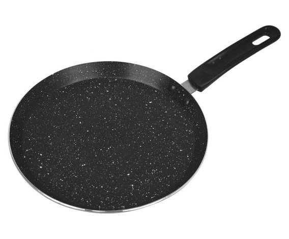 Patelnia do naleśników Ø28cm z powłoką granitową. Najwyższa jakość i funkcjonalność. Wysoka temperatura to dla patelni nie problem! Materiał z którego wyprodukowano naczynie równomiernie rozprowadza ciepło do niej dostarczane. Dzięki granitowej powłoce nieprzywierającej, nie doświadczą Państwo problemu z przyklejaniem i przypalaniem się produktów. Nowej generacji powłoka granitowa to wybór dla wszystkich, którzy chcą w prosty sposób przygotowywać zdrowe i smaczne posiłki, zapomnieć o przywieraniu jedzenia do dna patelni, garnka czy brytfanny i serwować potrawy o naturalnym smaku i w pełni soczyste.