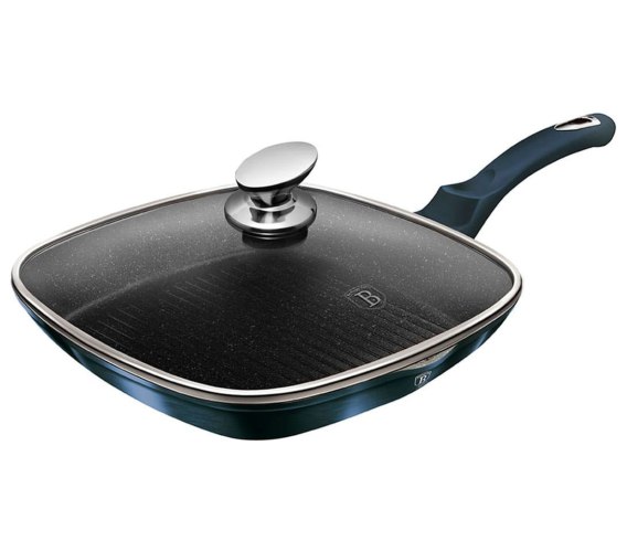 Patelnia grillowa granitowa z pokrywą szklaną 28 x 28cm BERLINGER HAUS z serii METALLIC LINE - AQUAMARINE