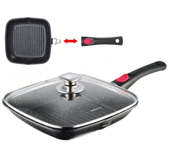Patelnia grillowa z powłoką granitową 28 x 28cm z odpinanym uchwytem firmy KINGHOFF