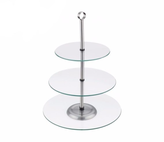 Szklana patera trzy-poziomowa do ciast lub przekąsek marki KINGHOFF / BRUNHOFF.