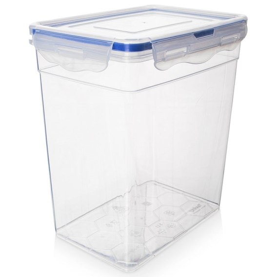 Przezroczysty pojemnik z gumową uszczelką w pokrywie. Szczelna pokrywa zamykana na cztery klipsy. Idealny do przenoszenia i przechowywania żywności lub produktów sypkich.