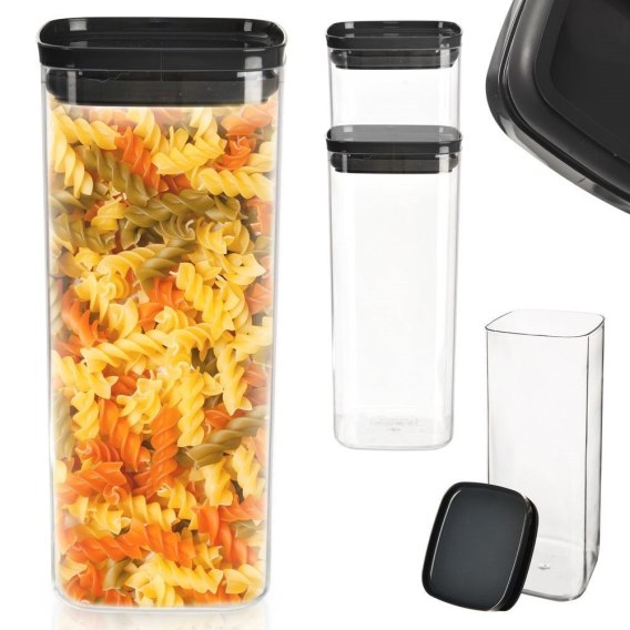 Kwadratowy pojemnik o pojemności 1,4 litra. Wyposażony w uszczelkę silikonową, która zapewnia szczelne zamknięcie. Idealny do przechowywania makaronu i innej żywności.