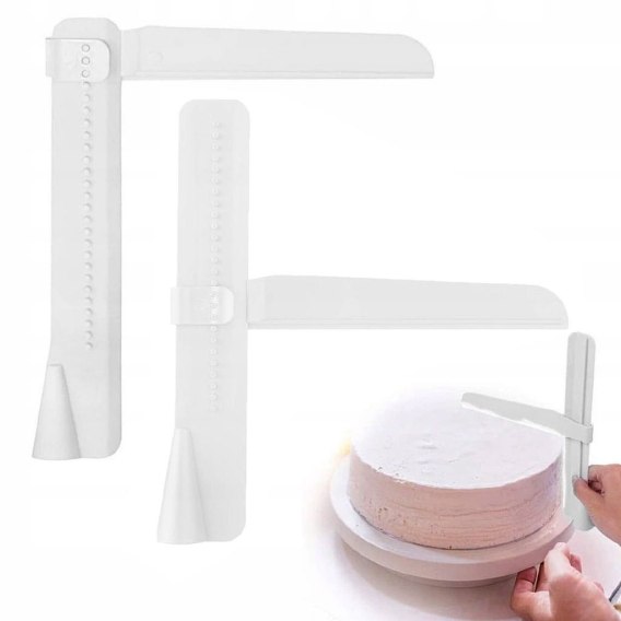 Regulowany skrobak do rozprowadzania i wygładzania kremu na torcie i innych wypiekach.