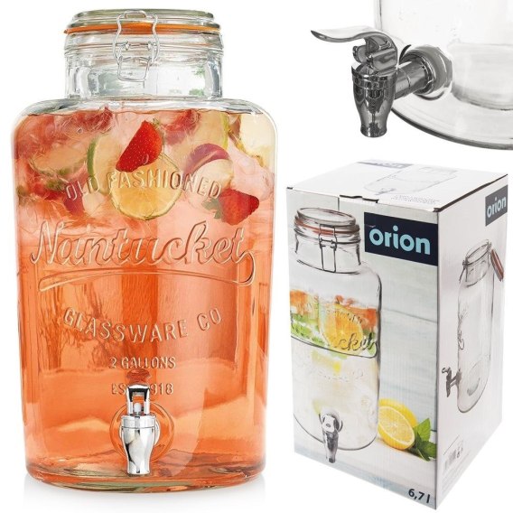 SŁÓJ SŁOIK DO NAPOJÓW Z KRANIKIEM SZKLANY NA NAPOJE WODĘ LEMONIADĘ 6.7L ORION 143778