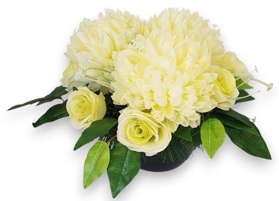 Kompozycje nagrobne z obciążeniem z wysokiej jakości sztucznych kwiatów i roślin.