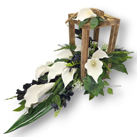 Dodaj wyjątkowy akcent do miejsca pamięci dzięki tej pięknej kompozycji w drewnianym lampionie. Stroik zachwyca żywymi kolorami i starannym wykonaniem - symbolizując pamięć oraz szacunek.