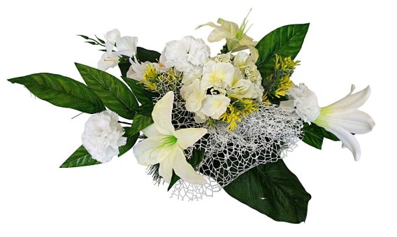 Kompozycje nagrobne z obciążeniem z wysokiej jakości sztucznych kwiatów i roślin.