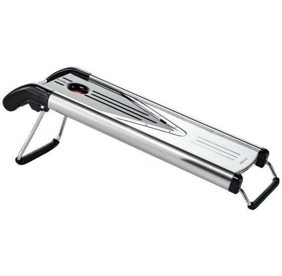 Krajalnica z ostrzem w kształcie litery V - łatwe i szybkie krojenie warzyw. Pięć wymiennych ostrzy: - wkładka tnąca z nożem: 1,5 mm, 2,5 mm, 3,5 mm - wkładka tnąca z nożem do plastrów Julienne: 3,5 mm, 7 mm Osłona palców - docisk do warzyw. Przycisk do łatwego wymieniania ostrzy. Nóżki z podkładkami z gumy termoplastycznej TPR powodują że krajalnica jest wyjątkowo stabilna. Można myć w zmywarce. Bezpieczna dla żywności i bez BPA. Rozmiar: 41.8 x 13.3 x 14 cm