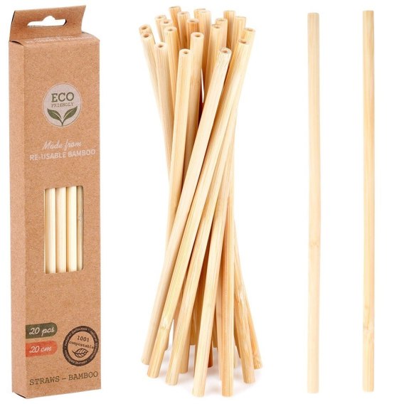 Zestaw 20 szt. wielorazowych słomek do napojów wykonanych z drewna bambusowego. Słomki idealne do zimnych napoi.