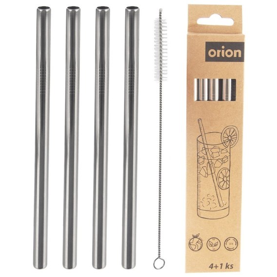 Zestaw czterech słomek wraz z czyścikiem. Świetnie się sprawdzą zarówno w domu, jak i w gastronomii, a czyścik pozwoli w łatwy sposób utrzymać słomki w czystości. Idealne do wody, koktajli, lemoniady, kawy, mrożonej herbaty, cappuccino itp. Oryginalny produkt czeskiej marki Orion. Wyprodukowano zgodnie z europejskimi standardami.