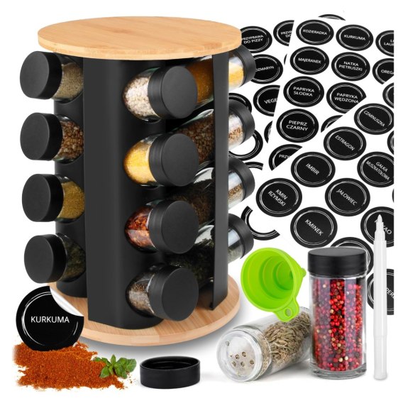 Stojak na przyprawy ROMERO obrotowy 16 słoiczków + 72 naklejki