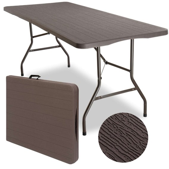 Bardzo praktyczny i lekki stół cateringowy. Konstrukcja wykonana ze stali. Blat wykonany z mocnego tworzywa sztucznego. Stolik po złożeniu tworzy praktyczną walizkę dzięki czemu zajmuje małą przestrzeń i jest łatwy do przeniesienia. Doskonale sprawdzi się na kempingu. Dzięki unikalnemu projektowi całość konstrukcji chowa się w blat stołu. Bardzo łatwy w transporcie. Najwyższej jakości mocne tworzywo użyte do produkcji blatu czyni go najmocniejszym i najgrubszym z oferowanych na polskim rynku.