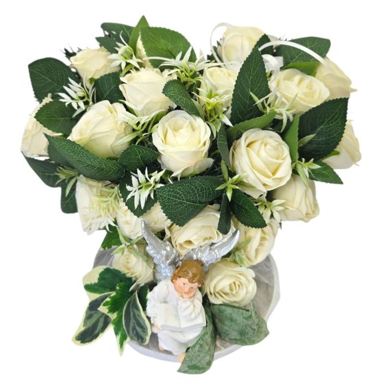 Stroik serce z aniołkiem na cmentarz grób dziecka sztuczne kwiaty