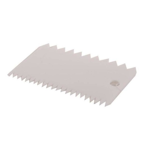 Szpatułka ząbkowana przydatna podczas dekoracji ciasta, tortu, rozcierania kremu. Dzięki niej można uzyskać efekty takie jak fale, prążki, kreski czy inne detale.