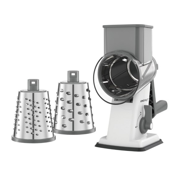 Wielofunkcyjna tarka bębnowa 3 w 1 marki KINGHOFF to niezastąpione narzędzie w każdej kuchni. Dzięki trzem wymiennym bębnom z wytrzymałej stali nierdzewnej 420 z łatwością zetrzesz, pokroisz lub poszatkujesz warzywa, owoce, sery, orzechy czy czekoladę. Doskonale sprawdzi się zarówno w domowej kuchni, jak i w restauracjach czy stołówkach.