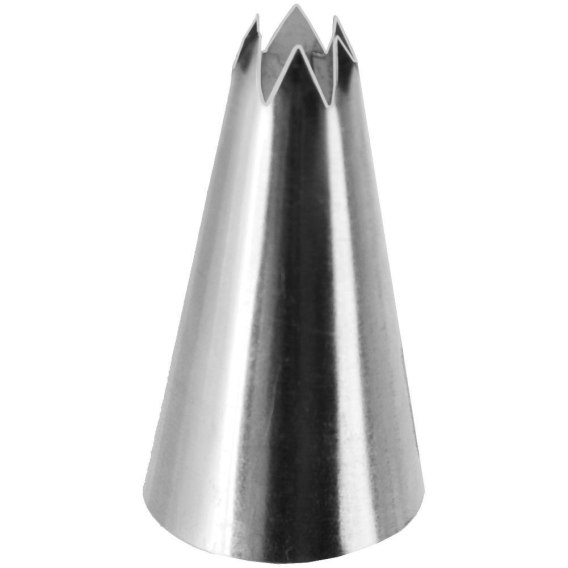 Końcówka do dekoracji w kształcie gwiazdki. Wykonana z najwyższej jakości stali nierdzewnej. Idealna do dekorowania ciast, tortów, babeczek i innych deserów.