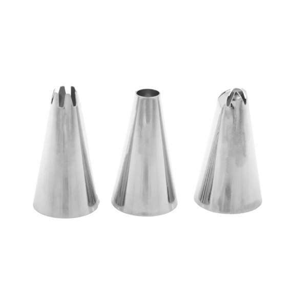 Zestaw zawiera 3 końcówki dekoracyjne o różnych wzorach, co pozwala uzyskać profesjonalne efekty bez konieczności użycia skomplikowanego sprzętu. Gładka powierzchnia stali sprawia, że tylki idealnie dopasowują się do rękawów cukierniczych i są łatwe do czyszczenia. Ich kompaktowa konstrukcja umożliwia wygodne przechowywanie w szufladzie lub pojemniku.